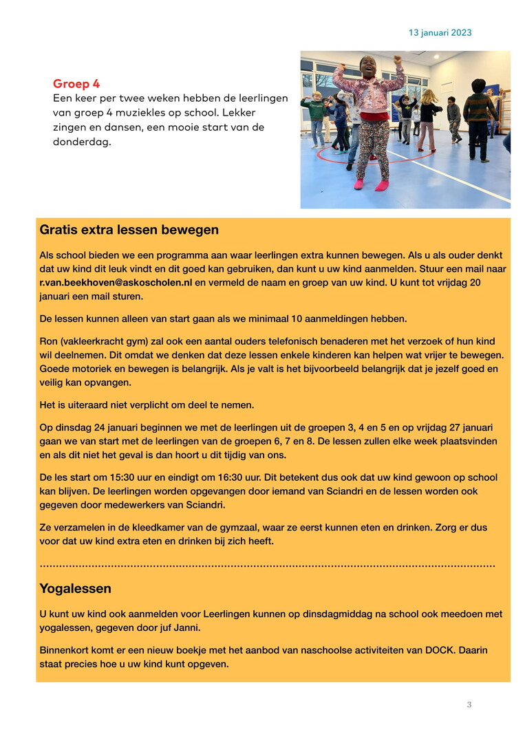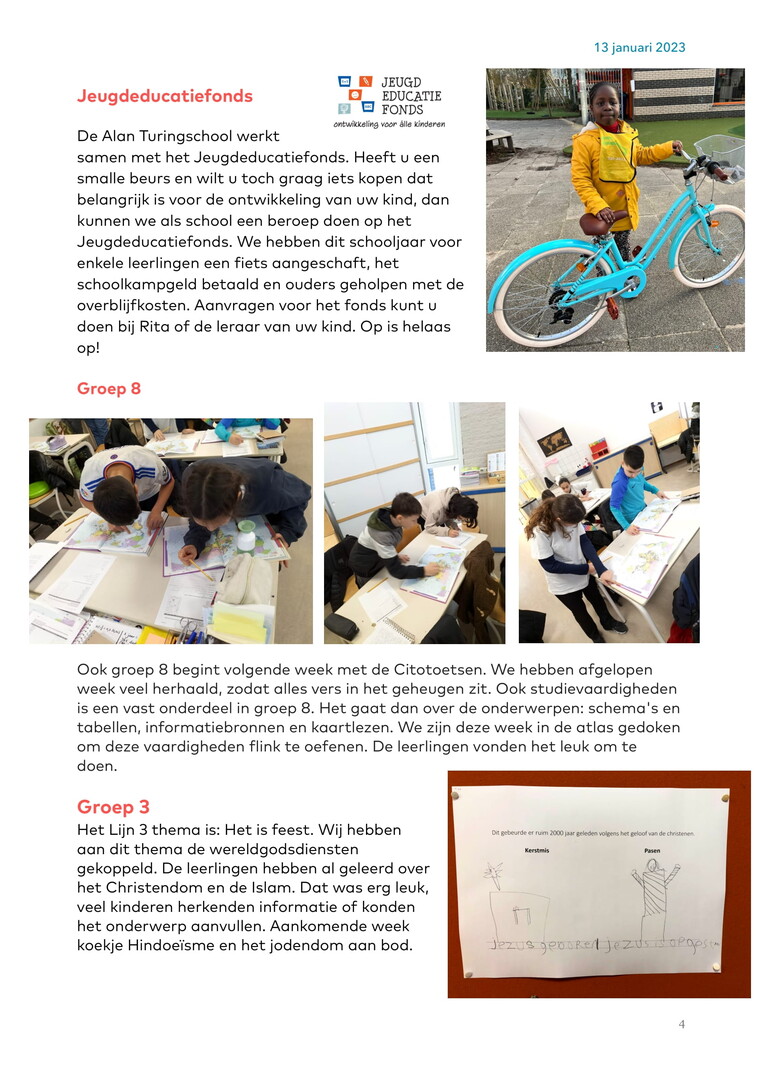 Nieuws uit de groepen; prentenboek van het jaar; gratis extra lessen bewegen; jeugdeducatiefonds; toetsen van leerlingen